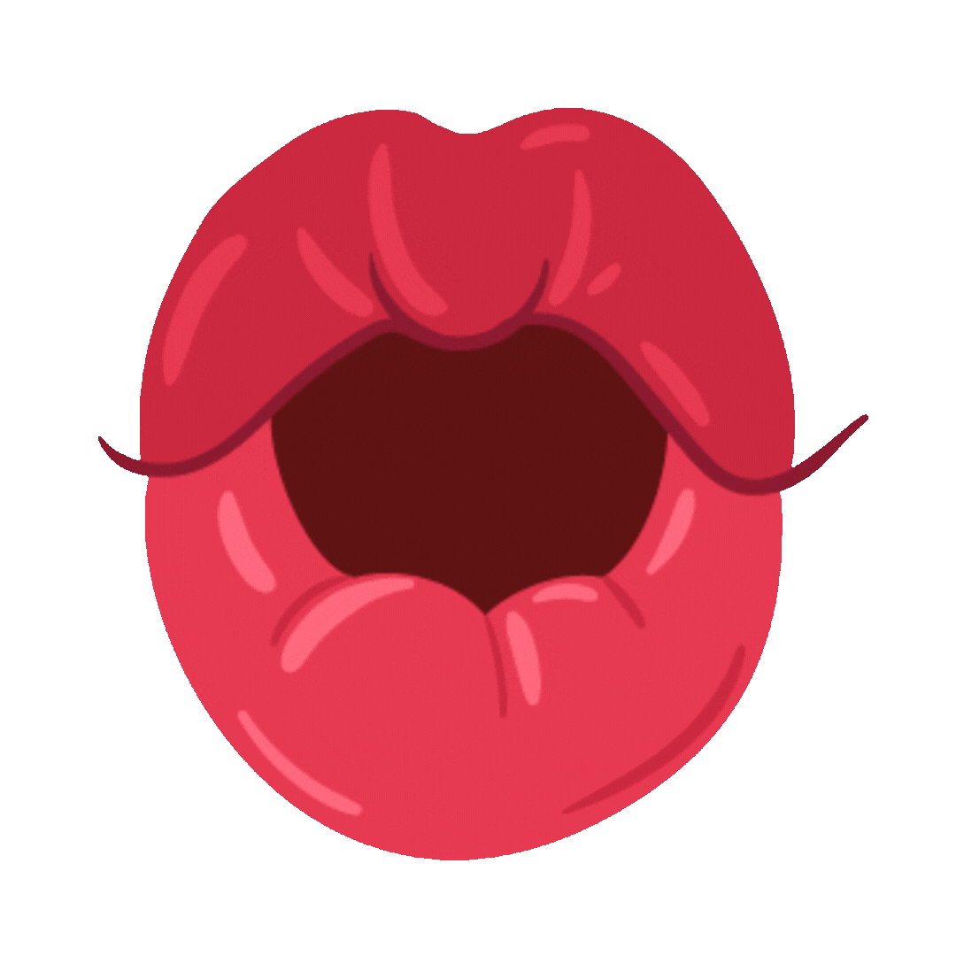 嘴唇嘟起(幾乎閉上),舌頭往前頂到牙齒 | |