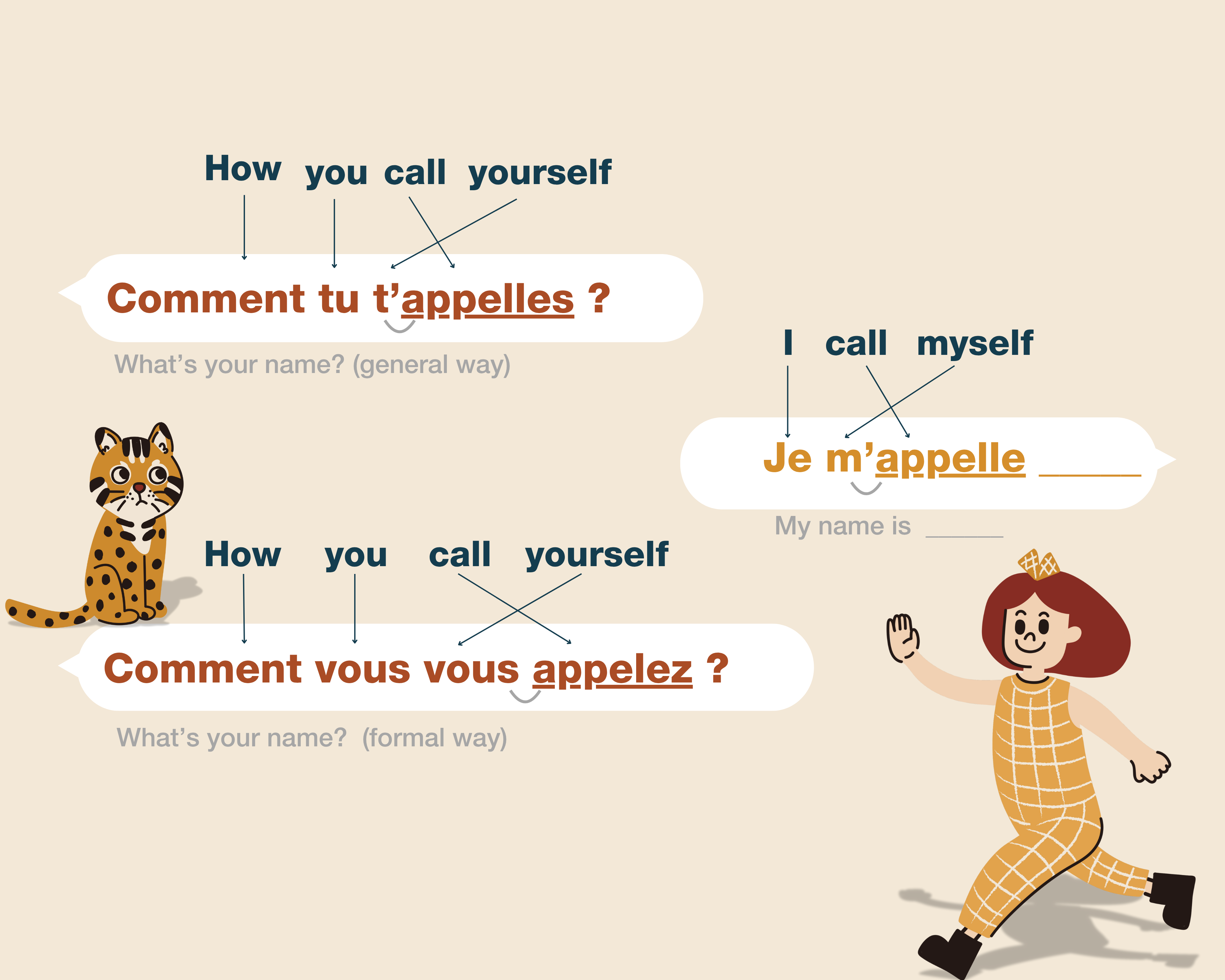 In this exercise, answer the questions using "Je m'appelle..."